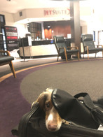 When traveling with a pet, especially on a plane, it can get a little nerve wrecking for you and your dog. The biggest piece of advice I can give to those thinking of traveling with a pet is to start getting your pet used to all sorts of situations at a young age. Once they're adults (just like humans) they are more stuck in their ways, and it's harder for them to adapt to different environments. By the time Vienna was about to turn 1, she had already flown across country with me twice, taken long car rides, and sat with us at dog friendly restaurants and bars.